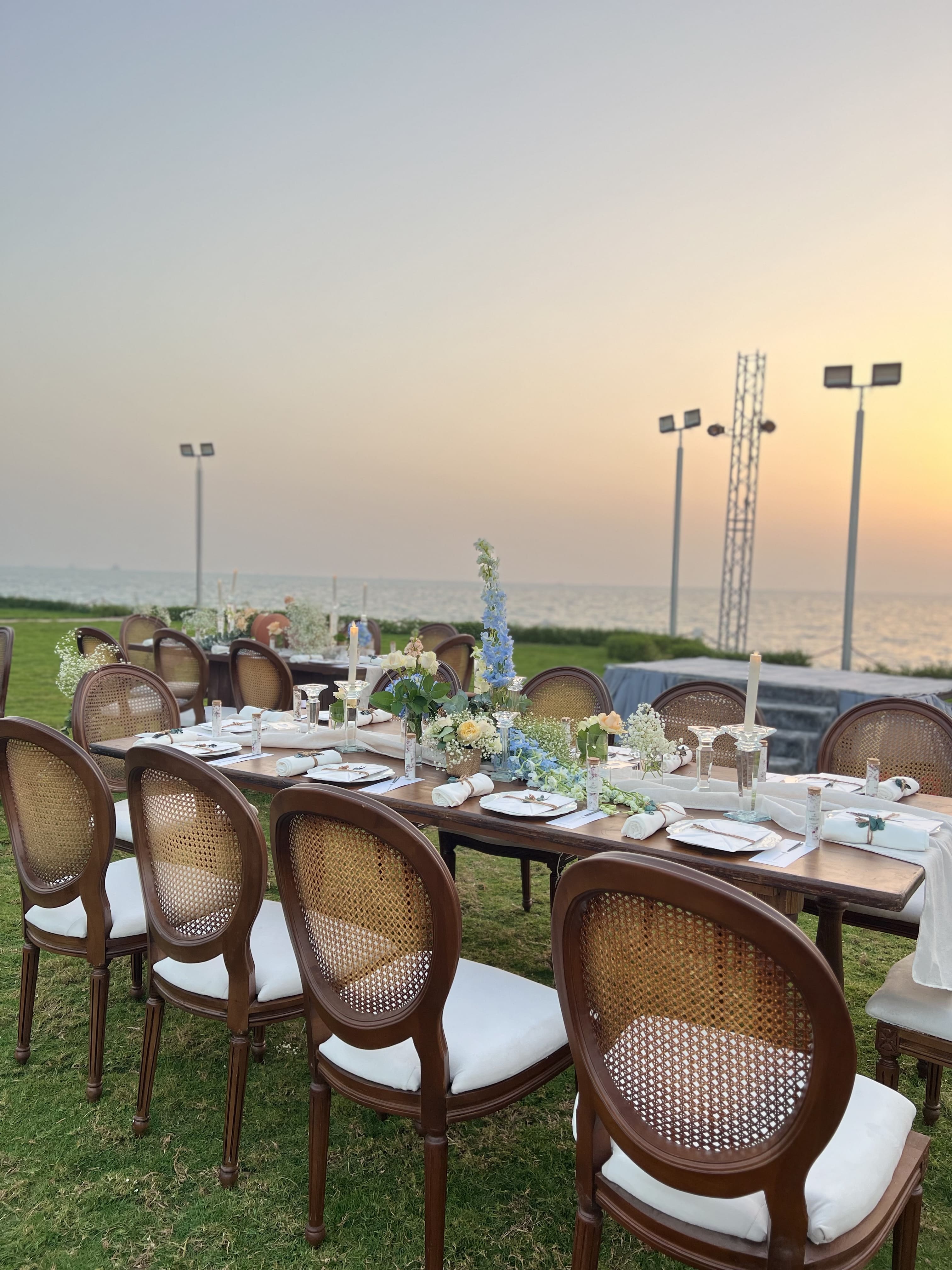 Designed as an elegant gathering by the sea, this celebration focused on simplicity, atmosphere, and detail. Light, soft florals, and carefully chosen elements shaped a setting that felt calm and timeless, allowing the moment to unfold naturally. Every detail was considered, creating an experience that felt special without excess, and memorable for its ease, warmth, and quiet beauty.