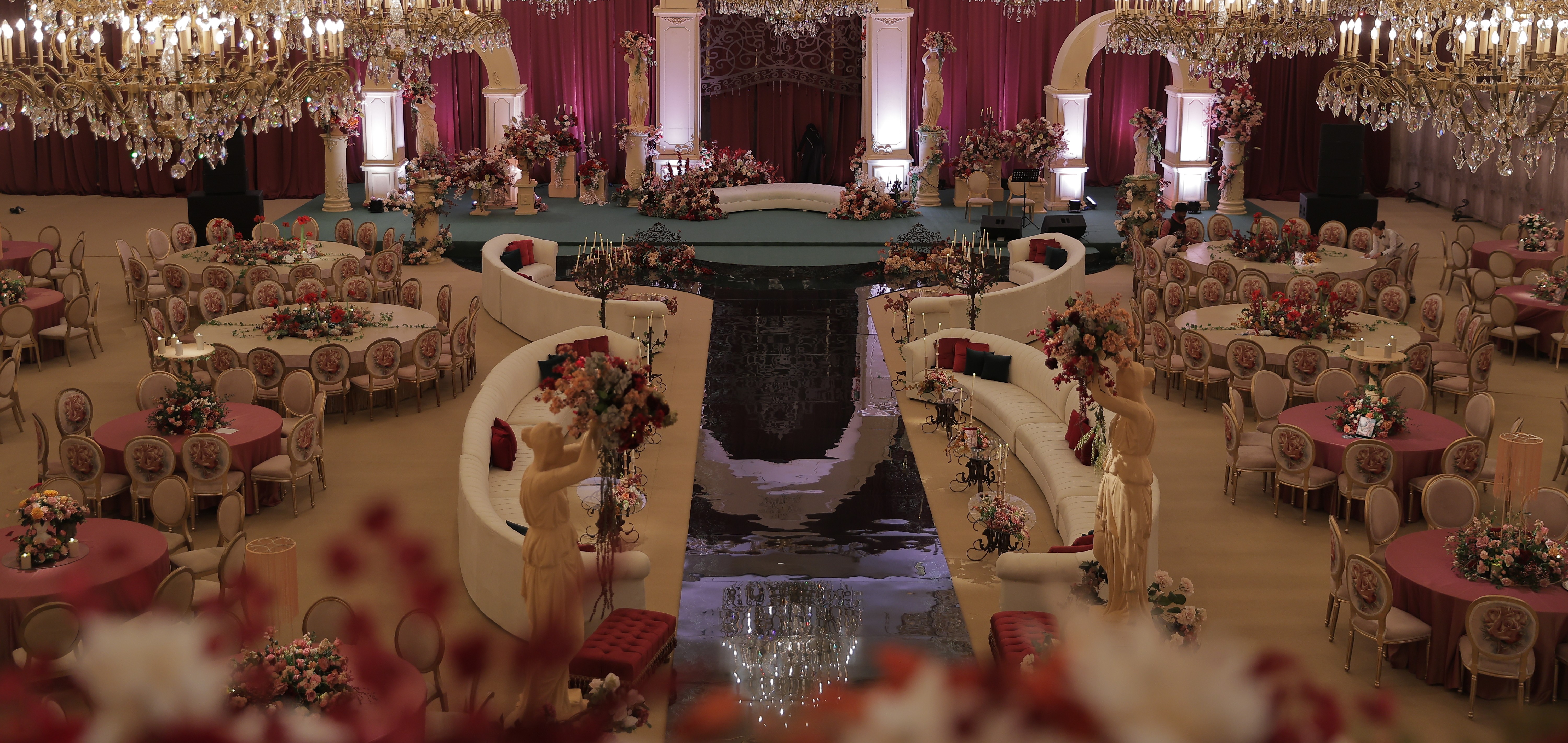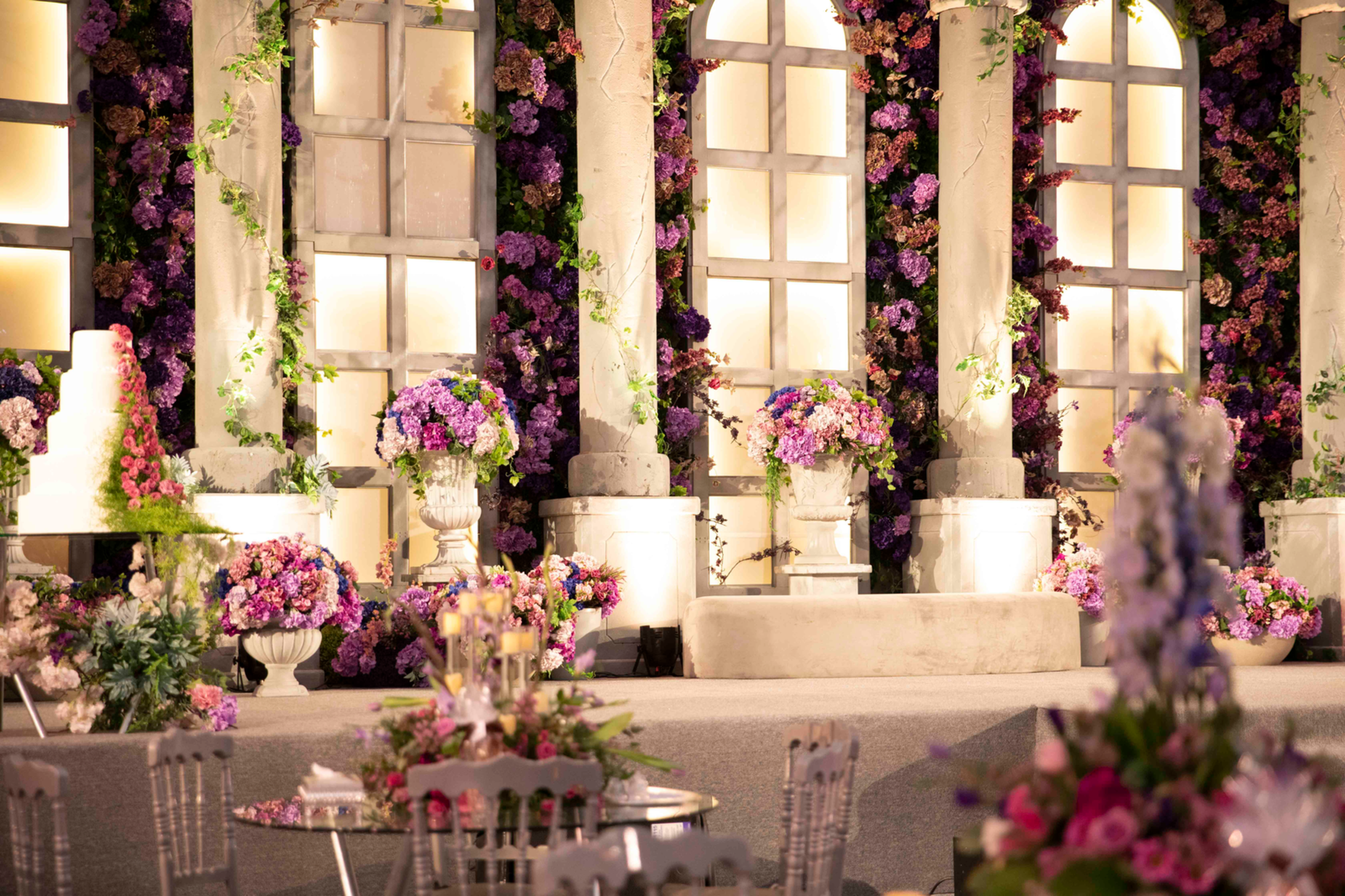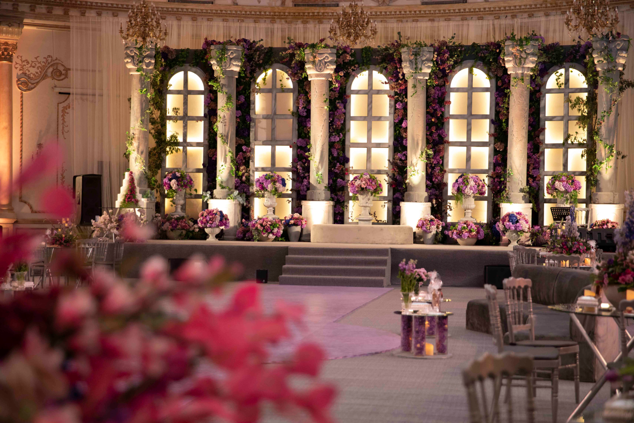 The space was designed as a modern take on classical form. Architectural structure, sculptural details, and soft florals came together to create a setting that felt open yet balanced. Every element was thoughtfully placed, allowing the design to feel timeless.